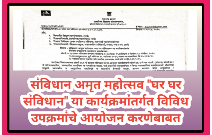 संविधान अमृत महोत्सव “घर घर संविधान” या कार्यक्रमांतर्गत विविध उपक्रमांचे आयोजन करणेबाबत sanvidhan amrut mahotsav