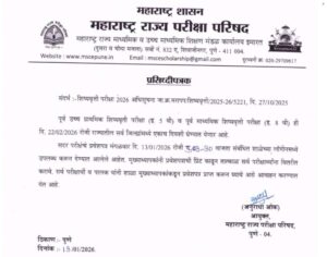 पूर्व उच्च प्राथमिक शिष्यवृती परीक्षा (इ. 5 वी) व पूर्व माध्यमिक शिष्यवृत्ती परीक्षा (इ. 8 वी) ही दि. 22/02/2026 रोजी राज्यातील सर्व जिल्ह्यांमध्ये एकाच दिवशी घेण्यात येणार आहे.