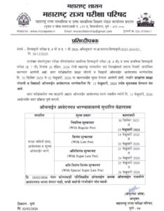 सदर परीक्षेकरीता ज्या शाळांनी अद्याप ऑनलाईन आवेदनपत्र भरले नसतील त्यांनी दि. 13 फेब्रुवारी, 2026 अखेरपर्यंत सदर प्रक्रिया पूर्ण करावी.