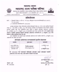 – 1. शिष्यवृत्ती परीक्षा इ. 4 थी व इ. 7 वी 2026 अधिसुचना जा.क्र. मरापप/शिष्यवृत्ती/2025-26/6321, दि. 30/12/2025.