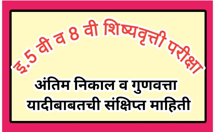 इ.5 वी व 8 वी शिष्यवृत्ती परीक्षा अंतिम निकाल व गुणवत्ता यादीबाबतची संक्षिप्त माहिती scolarship pariksha final merit list