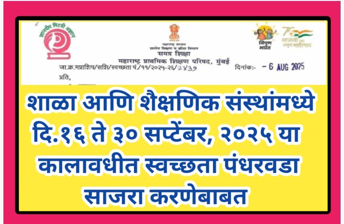 शाळा आणि शैक्षणिक संस्थांमध्ये दि.१६ ते ३० सप्टेंबर, २०२५ या कालावधीत स्वच्छता पंधरवडा साजरा करणेबाबत shala swachhata pandharvada sajara shasan paripatrak