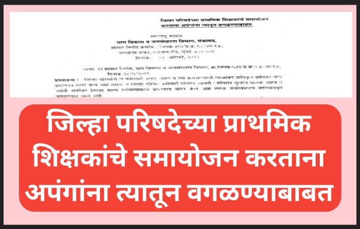 जिल्हा परिषदेच्या प्राथमिक शिक्षकांचे समायोजन करताना अपंगांना त्यातून वगळण्याबाबत shikshak samayojan