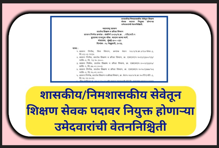 शासकीय/निमशासकीय सेवेतून शिक्षण सेवक पदावर नियुक्त होणाऱ्या उमेदवारांची वेतननिश्चिती shikshan sevak vetan nischiti