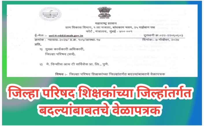जिल्हा परिषद शिक्षकांच्या जिल्हांतर्गत बदलीबाबतचे वेळापत्रक व इतर सूचना teacher transfer timetable