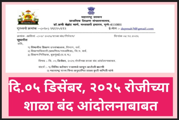 दि.०५ डिसेंबर, २०२५ रोजीच्या शाळा बंद आंदोलनाबाबत shala andolan