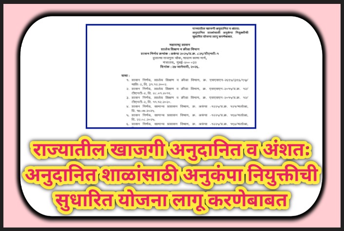 राज्यातील खाजगी अनुदानित शाळांमधील शिक्षकेत्तर कर्मचाऱ्यांना वाढीव मानधन लागू करणेबाबत vadhiv mandhan paripatrak १) शासन निर्णय, शालेय शिक्षण विभाग क्रमांकः एसएसएन २६०३/ (४१/०३)/माशि-२, दि.२५.११.२००५. २) शासन निर्णय, शालेय शिक्षण व क्रीडा विभाग क्रमांकः एसएसएन-२०१५/प्र.क्र.१२/टिएनटि-२, दि.११.१२.२०२० प्रस्तावना:- राज्यातील खाजगी अनुदानित शाळांमधील नव्याने नियुक्त होणाऱ्या शिक्षकेत्तर कर्मचाऱ्यांना पहील्या तीन वर्षाकरीता मानधन तत्वावर नियुक्ती देणेबाबत शासन निर्णय दिनांक … Read more