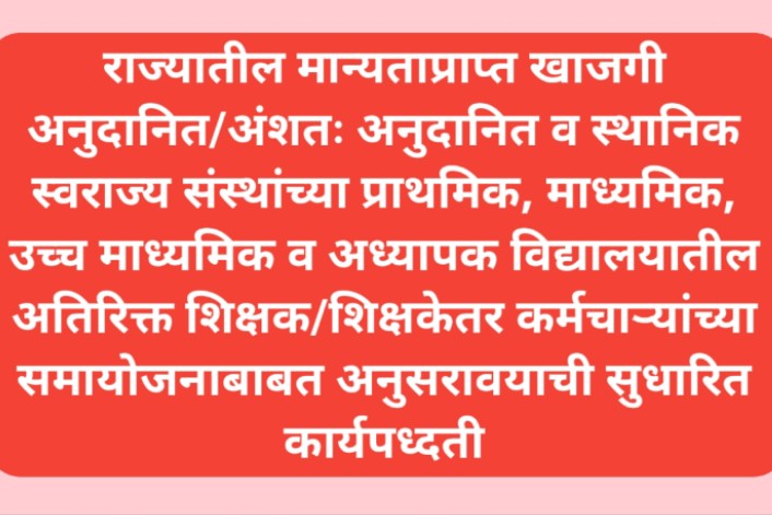 राज्यातील मान्यताप्राप्त खाजगी अंशतः/पूर्णतः अनुदानित माध्यमिक व उच्च माध्यमिक शाळांसाठी शिक्षकेतर कर्मचाऱ्यांसाठी सुधारित आकृतीबंध लागू करण्याबाबत sudharit akrutibandh संदर्भ: १. शालेय शिक्षण व क्रीडा विभाग शासन निर्णय क्र. एसएसएन २०१५/प्र.क्र.१२/टीएनटी-२. दि. २८.०१.२०१९ शासन परिपत्रक pdf download २. शालेय शिक्षण व क्रीडा विभाग शासन निर्णय क्र. एसएसएन-२०१५/प्र.क्र.१६/१५/टीएनटी-२. दि.१५.०३.२०२४ ३. शिक्षण संचालक (माध्यमिक व उच्च माध्यमिक), महाराष्ट्र … Read more