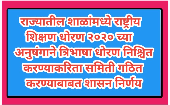 राज्यातील शाळांमध्ये राष्ट्रीय शिक्षण धोरण २०२० च्या अनुषंगाने त्रिभाषा धोरण निश्चित करण्याकरिता समिती गठित करण्याबाबत rashtriy shikshan dhoran tribhasha samiti