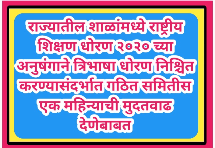 राज्यातील शाळांमध्ये राष्ट्रीय शिक्षण धोरण २०२० च्या अनुषंगाने त्रिभाषा धोरण निश्चित करण्यासंदर्भात गठित समितीस एक महिन्याची मुदतवाढ देणेबाबत tribhasha dhoran