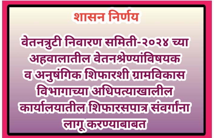 वेतनत्रुटी निवारण समिती-२०२४ च्या अहवालातील वेतनश्रेण्यांविषयक व अनुषंगिक शिफारशी ग्रामविकास विभागाच्या अधिपत्याखालील कार्यालयातील शिफारसपात्र संवर्गांना लागू करण्याबाबत vetantruti nivaran samiti