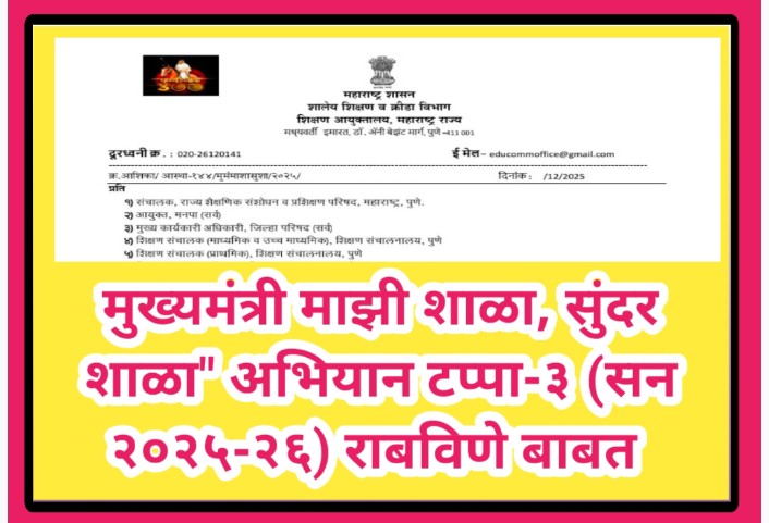 मुख्यमंत्री माझी शाळा, सुंदर शाळा” अभियान टप्पा-३ (सन २०२५-२६) राबविणे बाबत mazi shala sundar shala