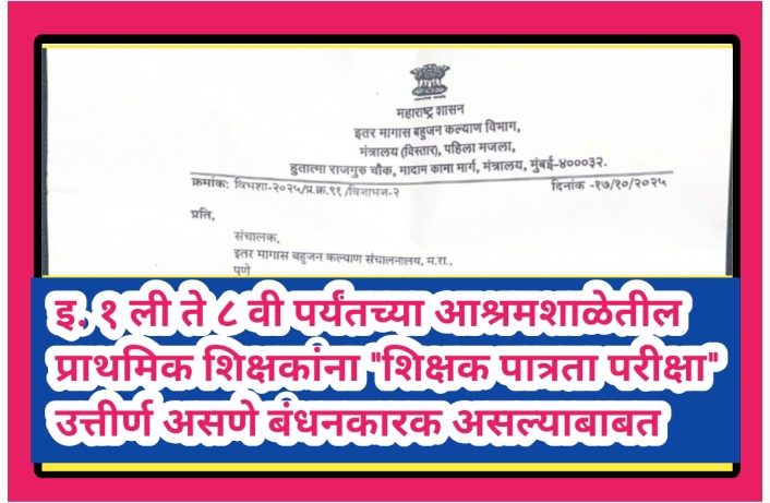संदर्भ – १) संचालक, इतर मागास बहुजन कल्याण संचालनालय, म.रा.. पुणे यांचे पत्र क्र. इमाबकसं / आशा/टीईटी/२०२५-२६/२८४५, दि.४/६/२०२५