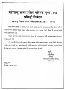 प्रसिद्धी निवेदन महाराष्ट्र शिक्षक पात्रता परीक्षा (MAHATET) – २०२६ tet exam online application