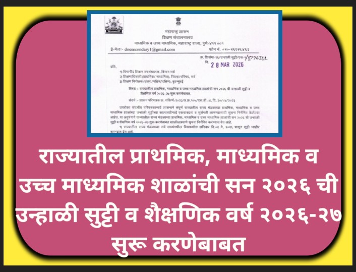 राज्यातील प्राथमिक, माध्यमिक व उच्च माध्यमिक शाळांची सन २०२६ ची उन्हाळी सुट्टी व शैक्षणिक वर्ष २०२६-२७ सुरू करणेबाबत unhali sutti paripatrak