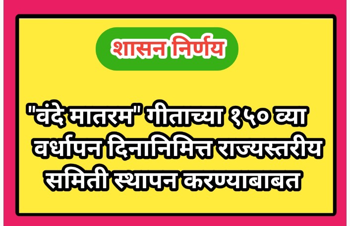 “वंदे मातरम” गीताच्या १५० व्या वर्धापन दिनानिमित्त राज्यस्तरीय समिती स्थापन करण्याबाबत vande mataram vardhapan din