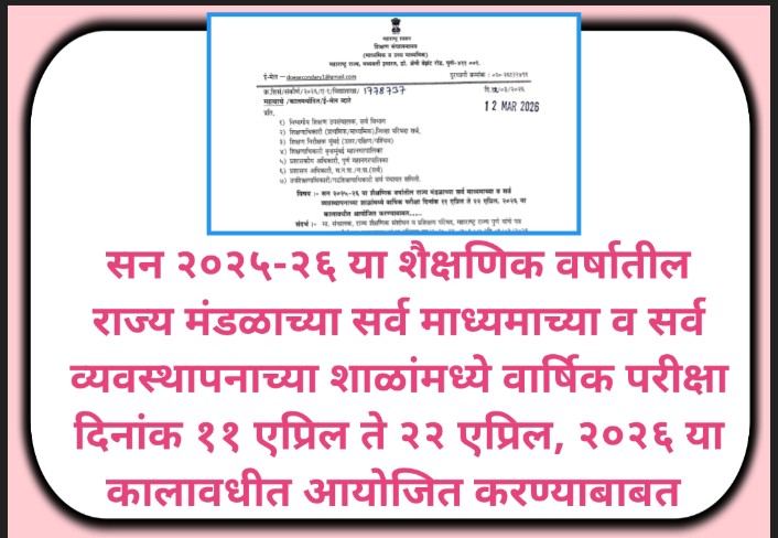सन २०२५-२६ या शैक्षणिक वर्षातील राज्य मंडळाच्या सर्व माध्यमाच्या व सर्व व्यवस्थापनाच्या शाळांमध्ये वार्षिक परीक्षा दिनांक ११ एप्रिल ते २२ एप्रिल, २०२६ या कालावधीत आयोजित करण्याबाबत varahik pariksha date gr