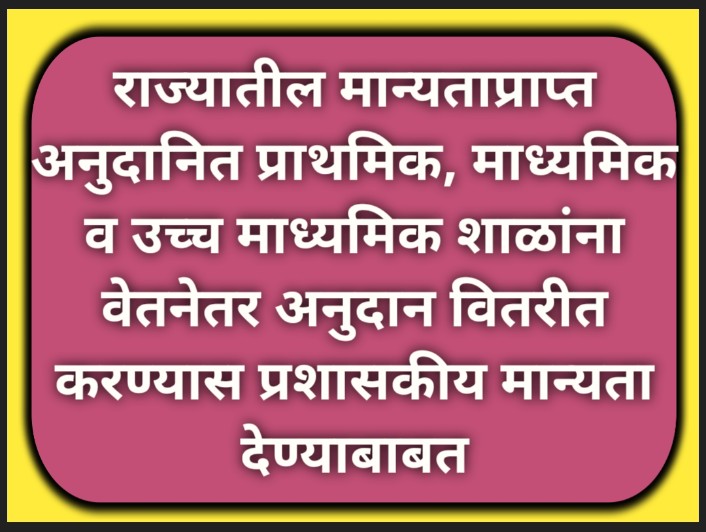राज्यातील मान्यताप्राप्त अनुदानित प्राथमिक, माध्यमिक व उच्च माध्यमिक शाळांना वेतनेतर अनुदान वितरीत करण्यास प्रशासकीय मान्यता देण्याबाबत vetanitar anudan vitran