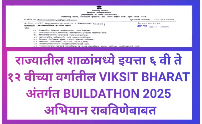 राज्यातील शाळांमध्ये इयत्ता ६ वी ते १२ वीच्या वर्गातील VIKSIT BHARAT अंतर्गत BUILDATHON 2025 अभियान राबविणेबाबत viksit bharat buildathon paripatrak